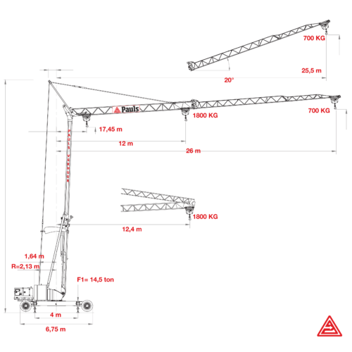 De EcoMove heeft een maximale hijscapaciteit van 1800 kg. De M21 heeft een gieklengte van 26 meter met een maximale puntlast van 700 kg. Iedereen boven de 18 jaar mag deze bouwkraan zonder hijsbewijs bedienen. Door een zelfrijdende onderwagen is het mogelijk om uw project vanaf meerder posities te ondersteunen. De kraan is makkelijk te verplaatsen en hierdoor snel en efficiënt inzetbaar. Na een instructie van Pauls kunt u de kraan zelf makkelijk verplaatsen. Waardoor deze kraan zeer flexibel en efficiënt inzetbaar is.